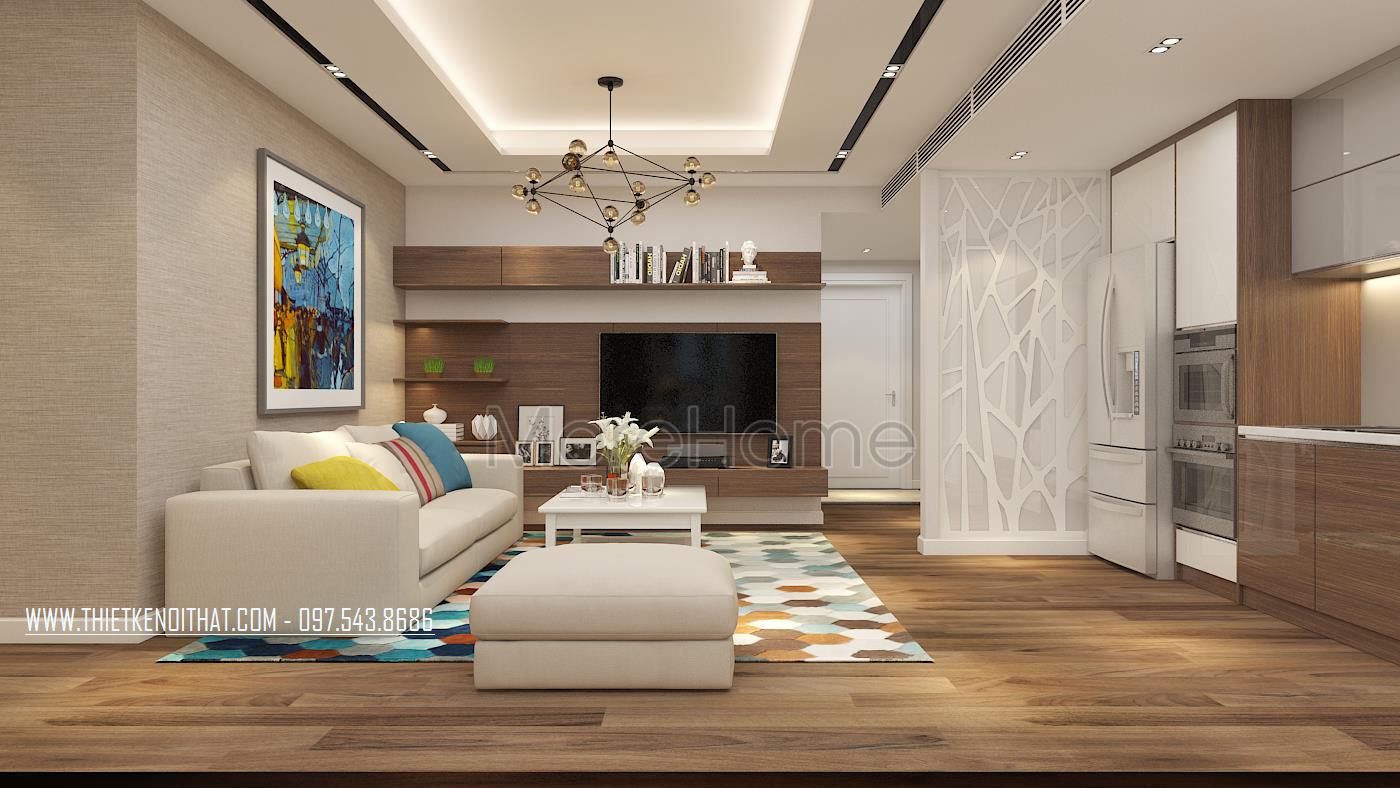 Giải pháp tối ưu được lựa chọn cho những căn hộ chung cư đó là nội thất thiết kế với không gian mở nhằm tận dụng tối đa ánh sáng thiên nhiên. Với diện tích nằm trong tầm trung nên các kiến trúc sư đã lồng ghép không gian phòng khách – ăn – bếp thành một không gian sinh hoạt chung thống nhất nhưng vẫn đảm bảo có sự riêng tư nhất định.