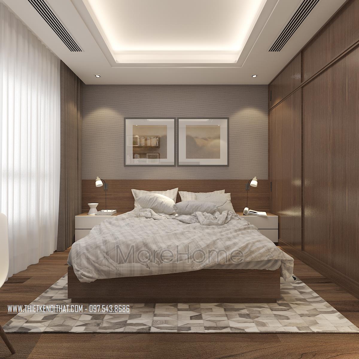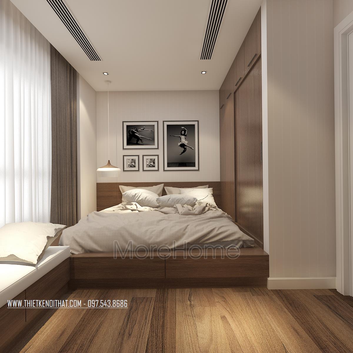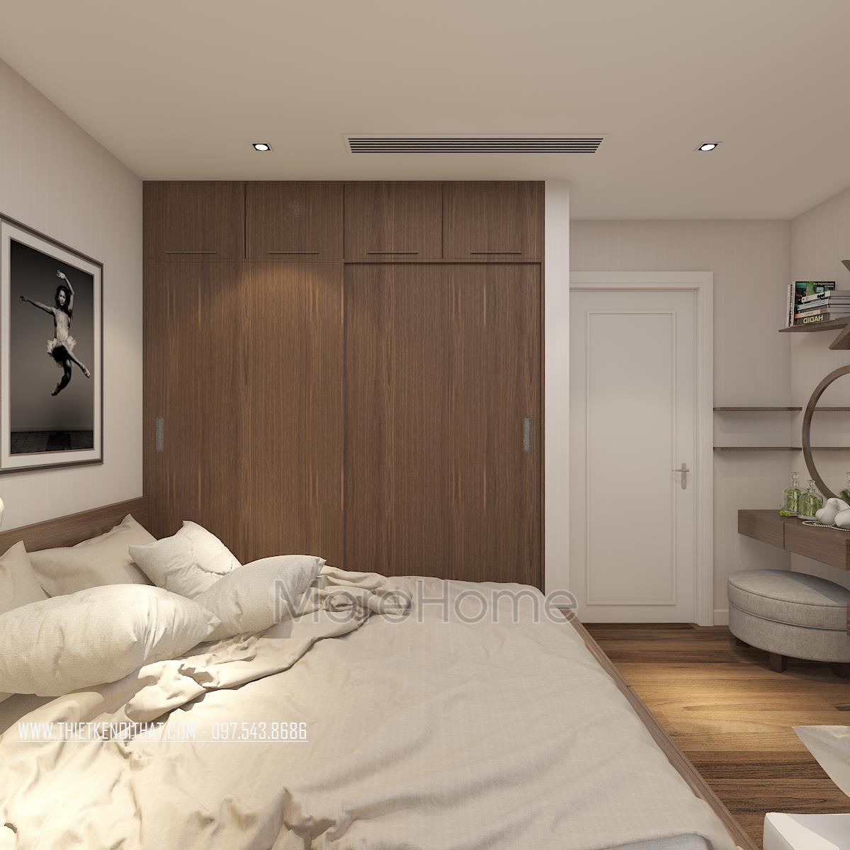 Với thiết kế nội thất chung cư hiện đại căn hộ nhà anh Hùng phần nào thể hiện được sự tinh tế trong sử dụng màu sắc, nghệ thuật trong kết hợp ánh sáng tự nhiên và ánh sáng nhân tạo, sự tâm huyết trong thiết kế không gian phù hợp với công năng sử dụng cũng như tận dụng tối đa được diện tích sử dụng. Đây là một phần yêu cầu của gia chủ cũng như là múc tiêu mà kiến trúc sư của Morehome hướng tới “mang lại không gian sống thoải mái nhất cho gia chủ ”.