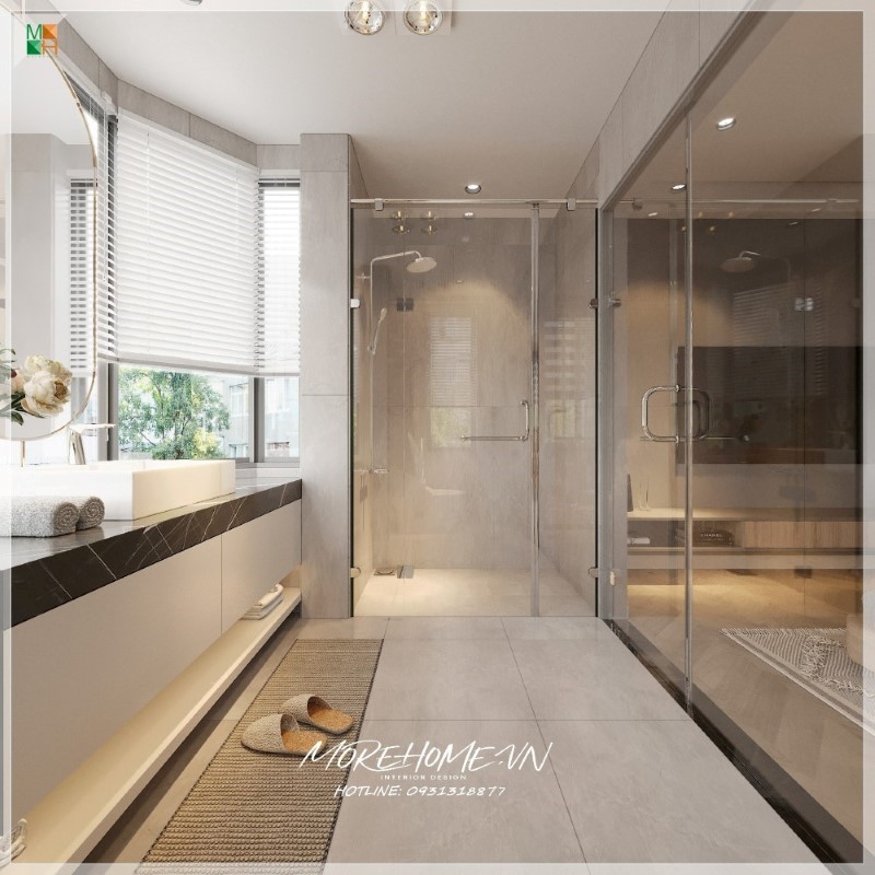 Một phòng tắm kính trang hoàng, tinh tế
